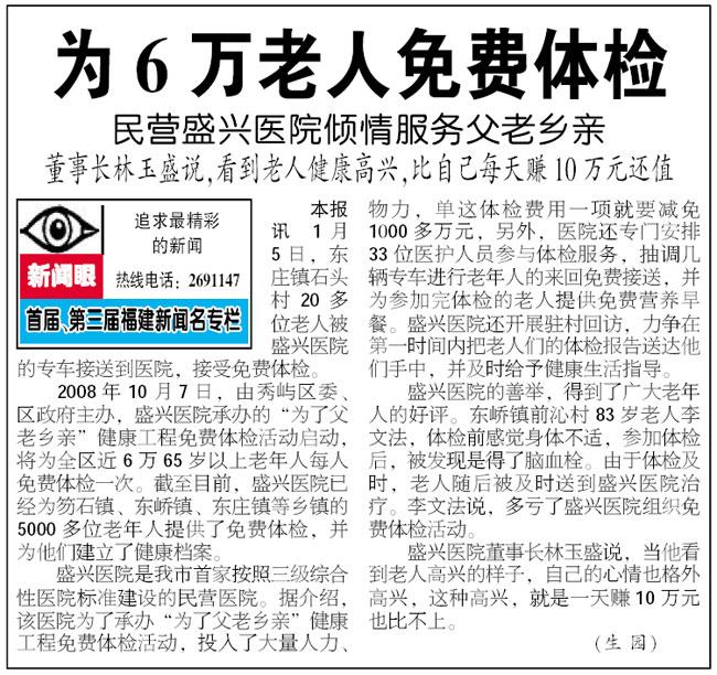 湄洲日報--盛興醫(yī)院為6萬老人免費體檢