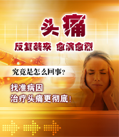 (7)其他原因所致:常見有心因性頭痛,主要由于精神或情緒因索引起的頭痛,如常見的神經(jīng)官能癥性頭痛、癔病或抑郁癥等,還有一些如“游泳鏡性頭痛”、良性咳嗽性頭痛、冷刺激性頭痛以及與性活動有關的“性交性頭痛”等。