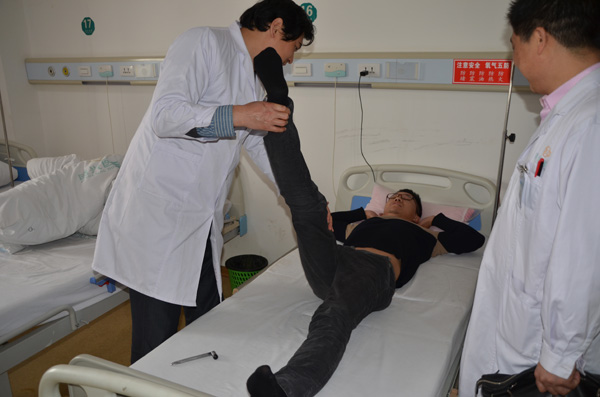 第三例患者,林珍發(fā),男,59歲,民營醫(yī)療投資者,莆田市東莊鎮(zhèn)后江村人。既往長期腰腿痛,在外院檢查,確診為“腰椎間盤突出癥”。經(jīng)針灸、理療、按摩、推拿、牽引等各種治療方法,癥狀反覆發(fā)作。近1個月來,腰腿痛加劇。聽聞盛興醫(yī)院引進新人才新設備,椎間盤突出可采取weichuang手術方式,慕名求診中醫(yī)骨科,經(jīng)行核磁共振復查提示:腰椎退行性變,L3-S1椎間盤膨出,L4/5椎間盤左后方突出6mm,左側神經(jīng)木艮受壓。經(jīng)綜合保守治療,成效不佳。賀樂熙醫(yī)師于2014年04月03日再次為患者實施在局部麻醉下行“經(jīng)皮椎間孔鏡下髓核摘除術”,手術過程順利,患者無疼痛,術后患者左下肢麻痛明顯緩解。臥床3天后,已腰圍保護下下地活動。