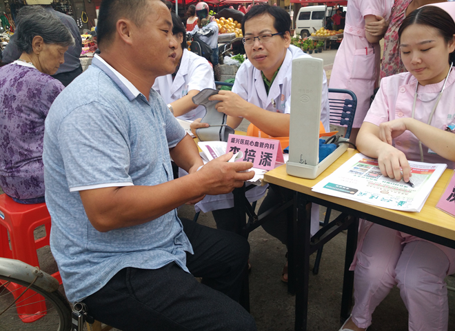 木艮據(jù)衛(wèi)生計(jì)生委辦公廳、中醫(yī)藥管理局辦公室、總后勤部衛(wèi)生部醫(yī)療管理《關(guān)于開(kāi)展2015年“服務(wù)百姓健康行動(dòng)”全囯大型義診活動(dòng)周的通知》和《福建省衛(wèi)生計(jì)生委辦公室轉(zhuǎn)發(fā)《衛(wèi)生計(jì)生委辦公廳等關(guān)于開(kāi)展2015年“服務(wù)百姓健康行動(dòng)”全囯大型義診活動(dòng)周的通知》等文件精神,莆田盛興醫(yī)院組織了部分科室主任、護(hù)士長(zhǎng)一行10余人深入社區(qū)開(kāi)展義診活動(dòng),9月17日,義診隊(duì)一行來(lái)到秀嶼區(qū)笏石鎮(zhèn)市場(chǎng)口,舉行“服務(wù)百姓健康行動(dòng)”義診活動(dòng),為人民群眾提供方便優(yōu)質(zhì)的醫(yī)療服務(wù)。