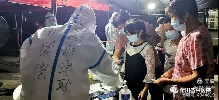 路上,我收拾好酸楚的心情,到了醫(yī)院大門口,看到大伙都一樣的兩手空空,來不及交流信息,氣喘吁吁地又往區(qū)政府集合。等待與其他醫(yī)院“戰(zhàn)友”會師時,總算得到了一點信息,仙游楓亭鎮(zhèn)要展開全員核酸檢測,各區(qū)都在抽調醫(yī)護人員連夜過去支援采集工作。聽到這里,我觀察了同行的18個同事,從他們的表情上沒有看出一絲一毫的害怕,反而是流露出種奔赴戰(zhàn)場的堅毅。在區(qū)委區(qū)政府領導的一番鼓勁下,11點50分左右,我們在坐上了去楓亭的大巴。