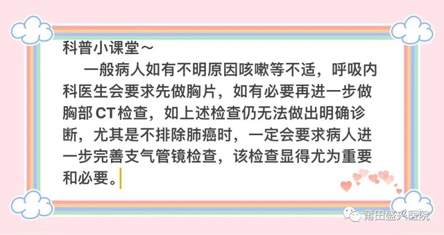 在呼吸內科關建華主任的問診下,得知其于一年前因進食出現嗆咳后,一直反復出現陣發(fā)性咳嗽、咳痰。這一年來呈間歇性,咳嗽、咳痰的同時還伴有發(fā)熱等癥狀。陳阿姨曾多次在別的地方就診均被診斷為肺炎,并以輸液、吃藥等進行治療。