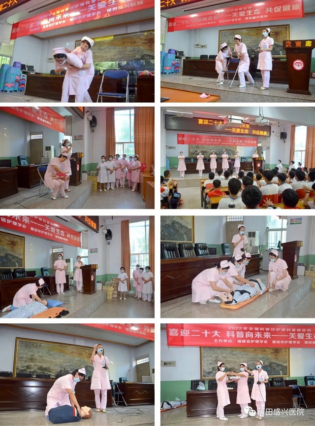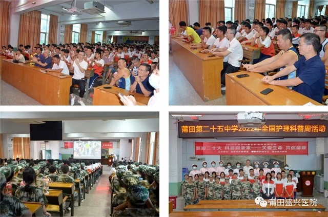 為認真貫徹《福建省護理學(xué)會關(guān)于開展2022年護理科普周活動的通知》精神,莆田盛興醫(yī)院于2022年9月20日組織9名護理骨干,在莆田二十五中學(xué)的梯形大教室舉辦主題為“喜迎二十大 科普向未來—關(guān)愛生命 共促健康”的護理科普周活動。參加科普周活動的對象主要是二十五中師生(老師、體育生、新入學(xué)學(xué)生)約320多人。