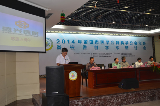 2014年10月26,由莆田市醫(yī)學(xué)會(huì)骨科學(xué)分會(huì)主辦,莆田盛興醫(yī)院承辦的“2014年莆田市醫(yī)學(xué)會(huì)骨科學(xué)分會(huì)年會(huì)暨脊柱weichuang學(xué)術(shù)研討會(huì)”在莆田盛興醫(yī)院圓滿閉幕。