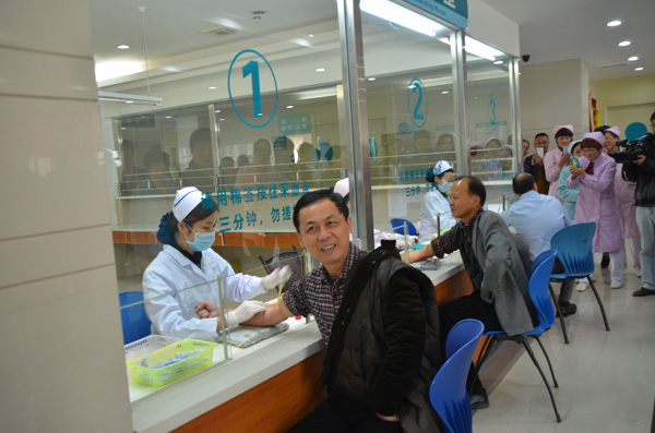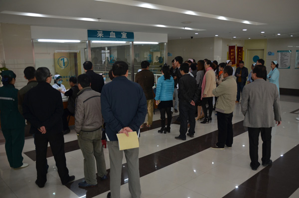 前來參加項目啟動儀式的部分社會人士,成為了批受檢人員,在門診三樓進行了血液樣本采集并填寫健康調(diào)查問卷。