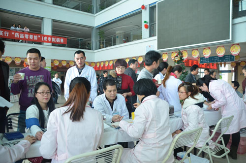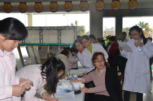 2015年2月3日下午,由莆田市中心血站組織的無(wú)償獻(xiàn)血活動(dòng)在莆田盛興醫(yī)院門(mén)診大廳進(jìn)行。來(lái)自盛興醫(yī)院和平海衛(wèi)生院、埭頭衛(wèi)生院的數(shù)十名自愿獻(xiàn)血者,為莆田市中心血庫(kù)獻(xiàn)出了自己的鮮血和愛(ài)心。據(jù)不完全統(tǒng)計(jì),僅莆田盛興醫(yī)院?jiǎn)T工就有47人,獻(xiàn)出鮮血13800ml。