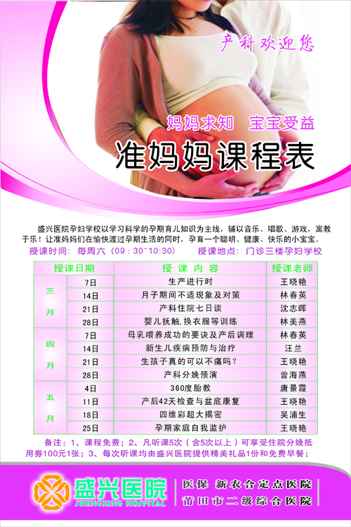 莆田盛興醫(yī)院孕婦學(xué)校2015年課程表